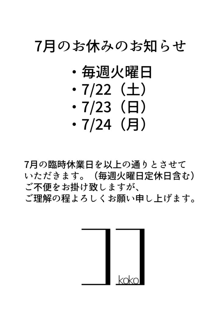 7月のお休みのお知らせ