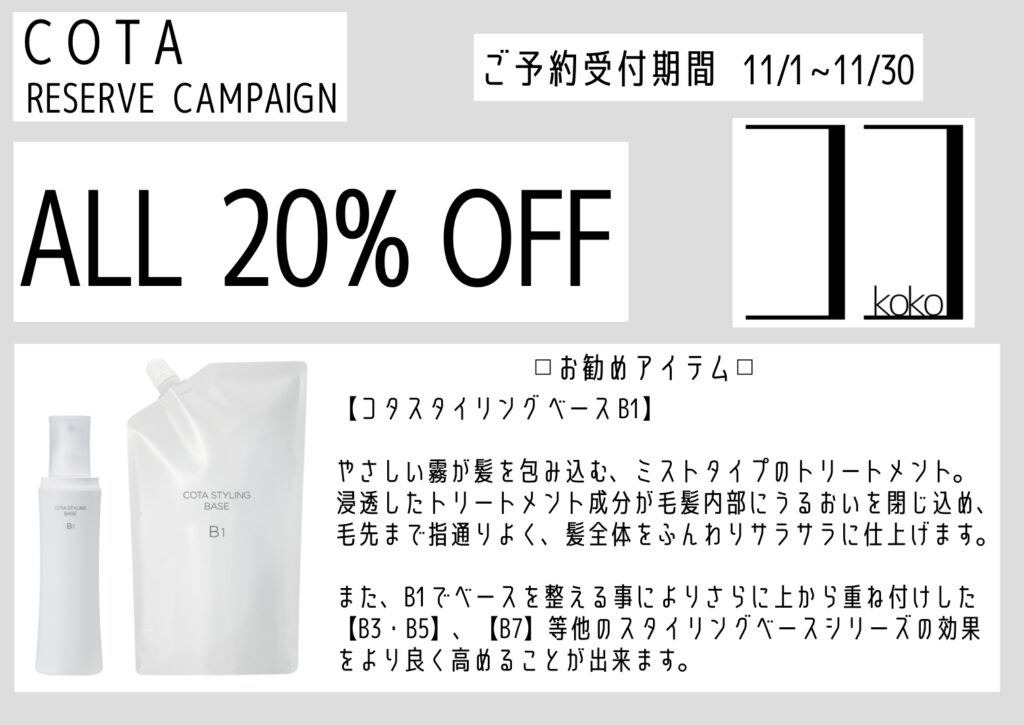 毎年恒例となりました年末のキャンペーンについてのお知らせです。 『COTA』シリーズ商品を割引価格で購入できる予約キャンペーンを今年もさせていただきます。 今年は昨年までのセットによる割引は廃止し、全アイテム一律 【20 […]