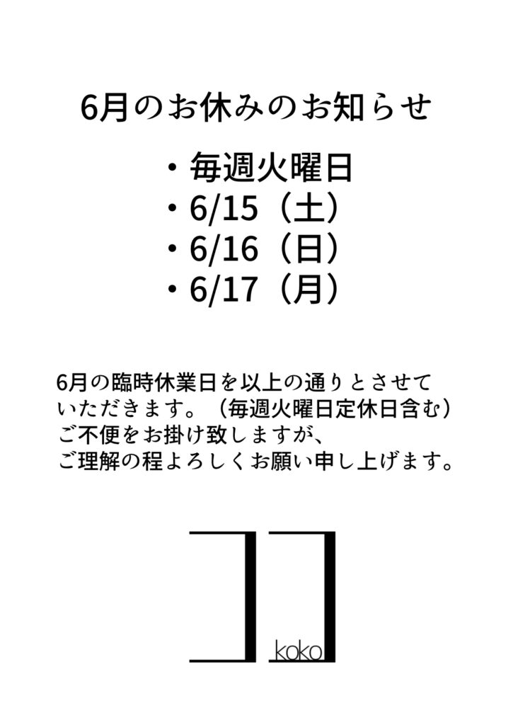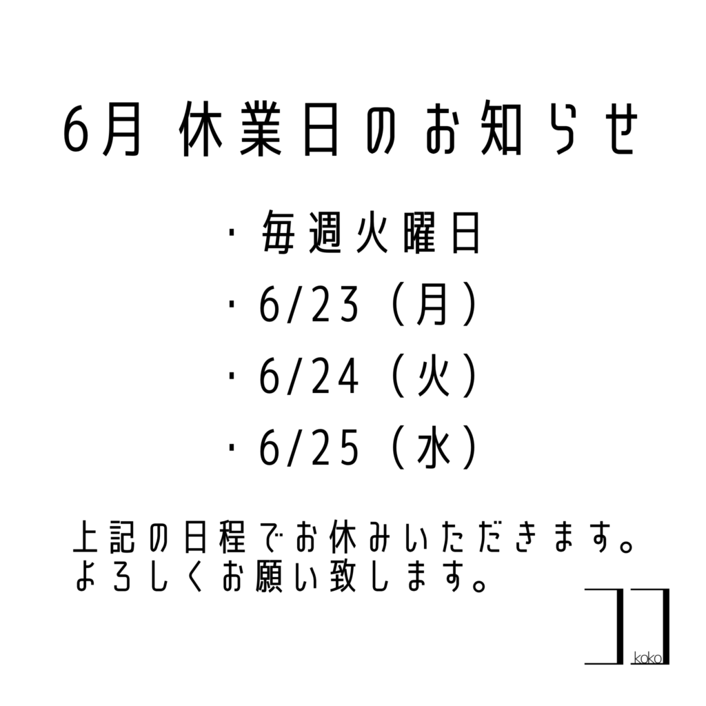 ◻︎6月のお休みのお知らせ◻︎