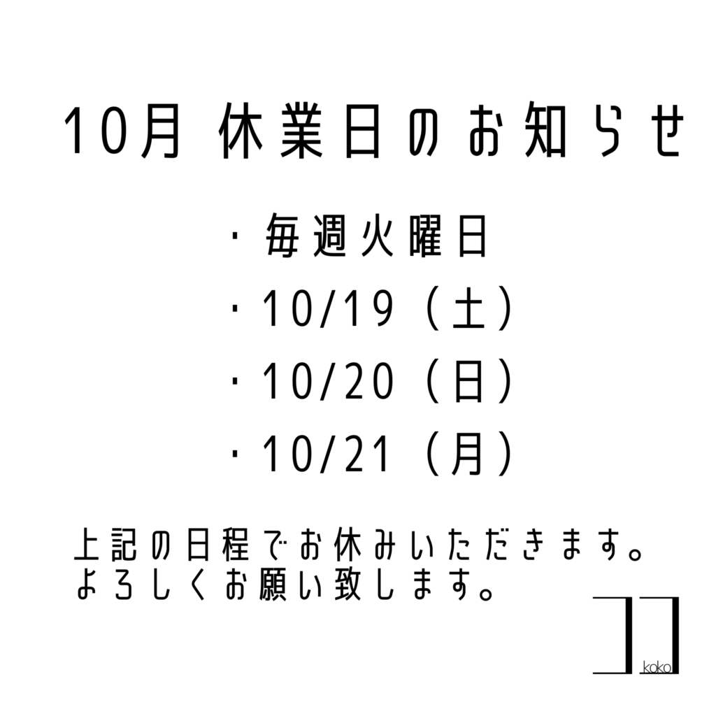 ◻︎10月のお休みのお知らせ◻︎
