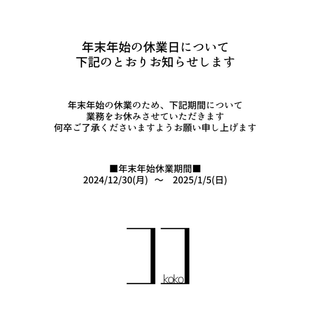 ◻︎年末年始の休業日のお知らせ◻︎